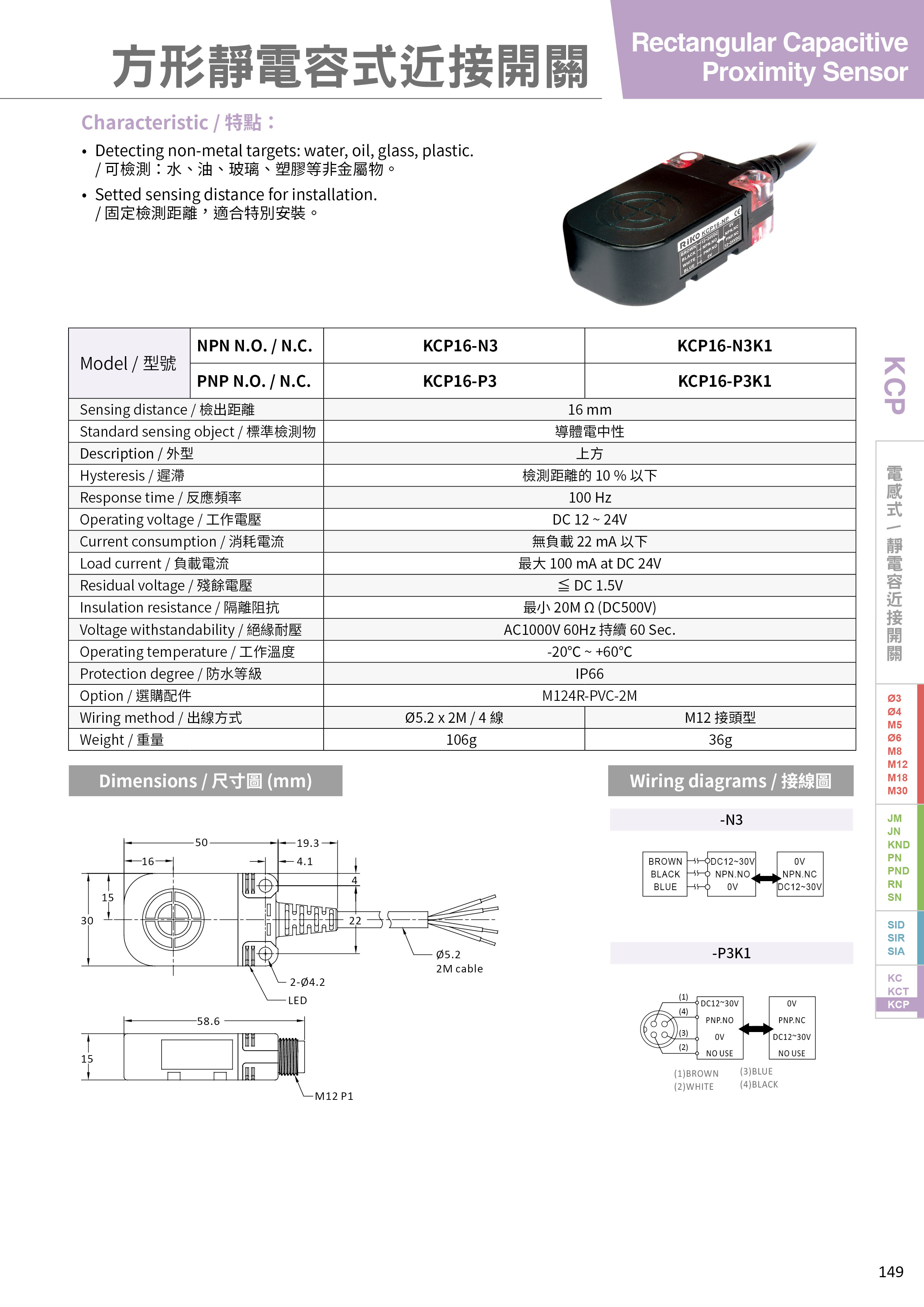 | NPN N.O. / N.C. | KCP16-N3 / KCP16-N3K1 |